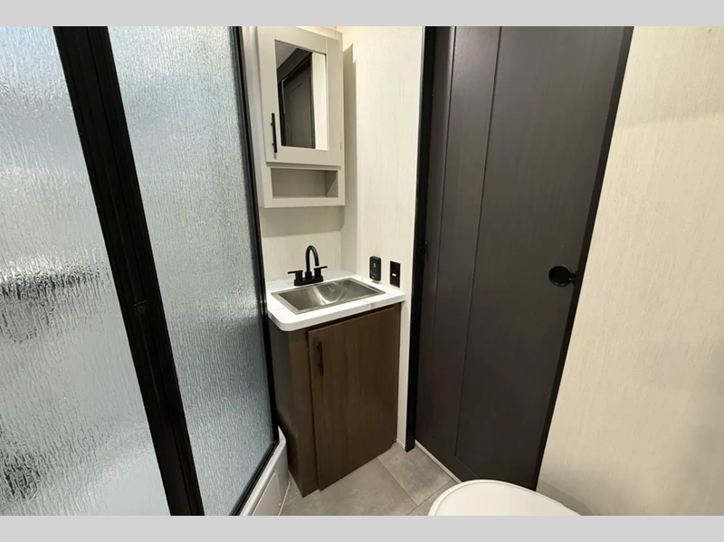 Prime Time LaCrosse 40+ foot travel trailer 44PARK highlights: Front Bathroom ... more about LaCrosse 44PARK